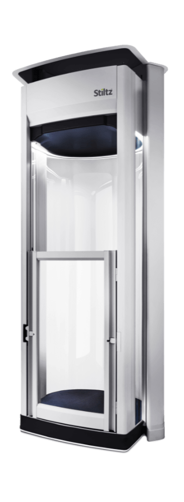 Su tecnología inteligente y sus amplias características de seguridad hacen que contar con un ascensor unifamiliar para casas Stiltz Duo+ sea una verdadera delicia. Nuestros ascensores unifamiliares son aptos para 1 o 2 pasajeros. Ambos lados del Duo+ son transparentes, y su acabado gris cálido le permite encajar tanto en interiores clásicos como modernos.